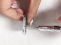 Insert the white cap and green chip into the back of the watch with the spudger or wooden coffee stick.