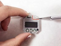In a chiseling motion, make an incision on the front side above the battery to cut out a plastic casing.