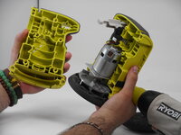 Use this guide to open up the casing on your Ryobi P411. The casing is the outside of the sander that protects the essential parts that make the sander function properly. It is easily distinguished since the plastic casing is a lime green and grey color. In order to replace any part of the Ryobi P411, use this replacement guide first. Make sure to remove the battery before you begin.