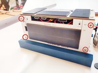 Assemble the frame to Power Board using the M2x5mm bolts and don't tighten the bolts all the way yet. Please note the frame holes aren't symmetrical, on each frame piece there has an arrow mark the arrow points to the top of the satellite, the frame with the 3/4 circle cut is supposed to go where the "Z+"