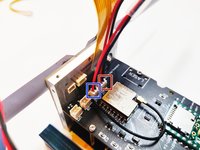 Take the RPI Camera ribbon cable and connect it to the camera fitted on the back of the Front Board. NOTE: work with tweezers and cautiously connect the ribbon cable to the camera.
