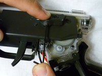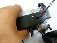 Using a flathead screwdriver, remove the two 5mm screws beside the safety switch on both sides of the gun.