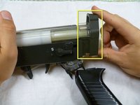 Turn the gun over so that you are facing the bottom of the gun.