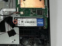 Remove the single 3 mm screw holding the SSD in place using a Phillips #0 screwdriver.