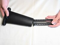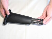Loop the other end of the spring to the hook on the T-shaped metal bar.