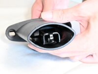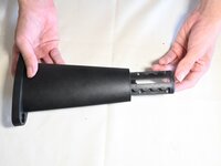 Carefully slide the components of the adjustment track out, starting with the hard plastic parts.
