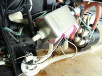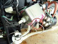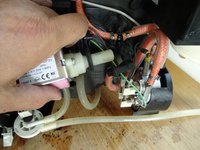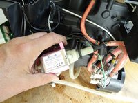 Lege die Kabel eng um die Pumpe und schraube sie aus dem Anschluss - dem Überdruckventil - auf der rechten Seite heraus.