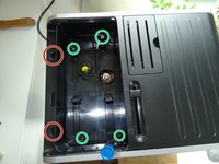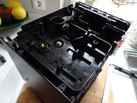 Für die meisten Reparaturen muss die Kaffeemaschine geöffnet werden. Dies wird hier gezeigt. Beachte, dass es Modelle mit dem Zierrahmen aus metallisiertem Kunststoff (hier gezeigt) und aus Metall gibt.