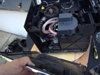 Eventuell kannst du nun auch die Schraube vorne am Metallrahmen erreichen und den Metallrahmen ganz ablösen. Hier wurde das nicht so gemacht.