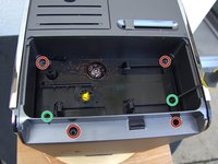 Für die meisten Reparaturen muss die Kaffeemaschine geöffnet werden. Dies wird hier gezeigt. Beachte, dass es Modelle mit dem Zierrahmen aus Metall (hier gezeigt) und aus Kunststoff gibt.
