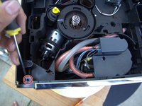 Drehe auch gleich die beiden Schrauben heraus, mit denen die Schließmechanik für den Bohnenbehälter noch befestigt ist.