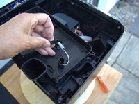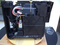Hebe die Platte hoch, entferne sie aber noch nicht ganz, erst muss noch der Sensor für den Bohnenfachdeckel ausgebaut werden.