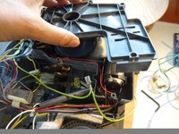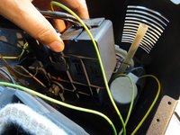 Nummeriere zur Sicherheit die Kabelstecker an der Elektronik durch. Du musst wahrscheinlich nur den etwas verborgenen Stecker Nr 14 an den beiden grünen Kabeln ganz unten und den Stecker Nr 7 am blauen Kabel oben abziehen.