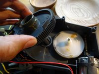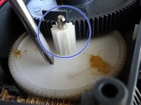 Hebe das graue Zahnrad hoch, dann kannst du das weiße Zahnrad entfernen.