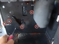 Das Getriebe ist mit fünf Kreuzschlitzschrauben an der Mittelwand befestigt. Drehe sie heraus.
