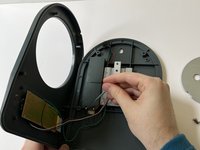 Lift the top half of the plastic shell to the side. Be careful, as the electrical circuit board will connect both parts.