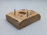 • A simple wrench can be made from a scrap piece of wood and two small nails. Drill two holes 32mm apart in the wood with a bit smaller than the nails. Tap the nails in, and if possible, cut and sand the tips so that they are flat and of the same height (prevents slipping).