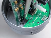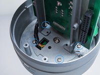 • Move the board mount toward the back of the microphone, away from the circuit boards. Notice how the remaining screw is no longer centered in the hole.