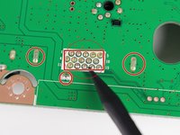 Desolder the four regions in the area indicated on the back side of the motherboard using a soldering iron and some desoldering wick.