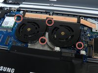 This guide may be used to remove the internal fans from the Samsung ATIV Book 9 Plus for replacement or cleaning. Have a Phillips screw driver handy. Make sure you are able to keep track of all the screws removed and where they belong (a magnetic project mat would be helpful). Replacement fans should be purchased from the laptop's original manufacturing company (fans can be bought online or in person from a Samsung retailer). Ensure that the former fans are disposed of properly, according to your city's ordinances. When removing the fans, make sure not to damage any cords connecting the fans to the laptop.