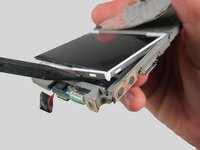 It may help to insert the pointed edge of the spudger into the small indentation shown on the right in the second image.
