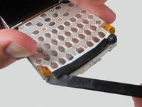 Insert the flat edge of the spudger to the space under the keypad and slide it along the bottom to lift the keypad out of its place. The keypad should be stuck to the surface very tightly.