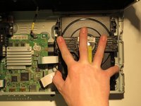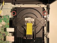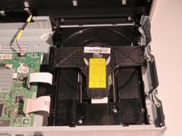 While pinching both tabs, slightly push the disc tray towards the front of the device, and lift the disc tray out.