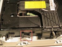 Locate the two black tabs on each side of the disc tray. The second tab is located in the same location on opposite side of marked tab.