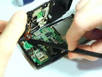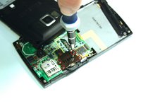 Remove the screen from the logic board. The screen will still be connected by a gold ribbon connection.