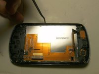 The LCD is glued to the front case. Use a pick or similar to release the LCD.