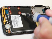 Remove the single screw connecting the motherboard to the base of the phone by using the #00 Phillips screwdriver.