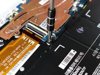 Remove four, 5mm Phillips #0 screws connecting the battery to the laptop