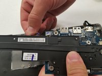 The screen cable is secure in place by a lever. Lift the lever to release it, then gently pull it out.
