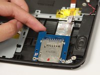 Use a blunt precision tweezer to remove both ribbon cables attached to the SD card reader.