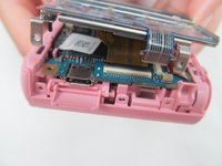Remove the display ribbon receptor lock to remove back panel from the motherboard.