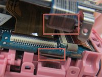 Hold the metal casing out of the way and snap the ribbon connector back. Remove the display screen ribbon attached.