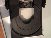 Find and locate the disk tray it is located top right hand side of the component when the back of the device ( dvd player ) is facing you.