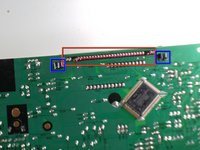 The LCD screen has pins attaching it to the motherboard. Flip the motherboard over.