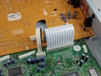 Remove the power cord and first two ribbons by pulling them directly out of their sockets.