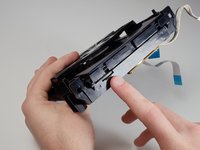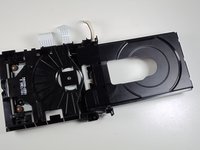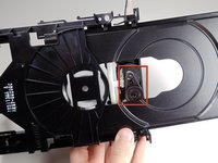 Use your fingers to pull the shown tabs towards the sides of the tray, releasing the internal tray that contains the laser.