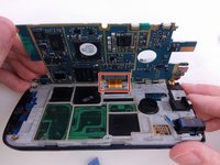 Use the flat end of a spudger to remove vibrator cable from motherboard.