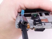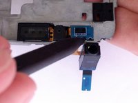 Use the flat end of the spudger to remove headphone jack component from rectangular housing.