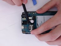 Insert a plastic pry tool into the gap between motherboard and base of phone
