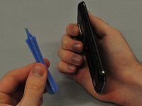 Insert the edge of the spudger into the slit and use it to pry the back case off of the phone.