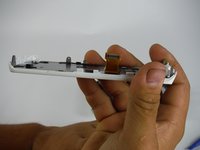 With the screen separated from the main chassis, use the plastic opening tool to gently pry the edge of the ribbon cable connector from the motherboard.