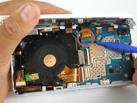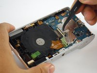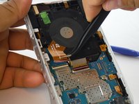 With all the screws removed, use the plastic opening tool to gently pry the headphone jack away from its casing. That jack holds the motherboard in place.