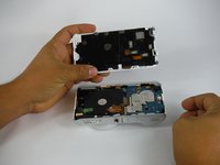With the flash assembly removed, gently pull the rest of the internal frame away from the casing to expose every last piece of the camera.