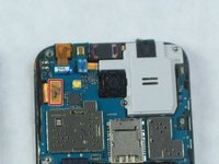 Locate the battery near the bottom of the phone. The battery is square, flat, and is labeled 'SAMSUNG'.