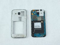 Locate the battery near the bottom of the phone. The battery is square, flat, and is labeled 'SAMSUNG'.
