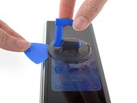 • Now bezel-less, the screen is primed for prying off! We didn't need any heat last time, but today it seems Samsung isn't taking chances—they want this screen to stay put, and have added an extra sticky strip of black tar goop.